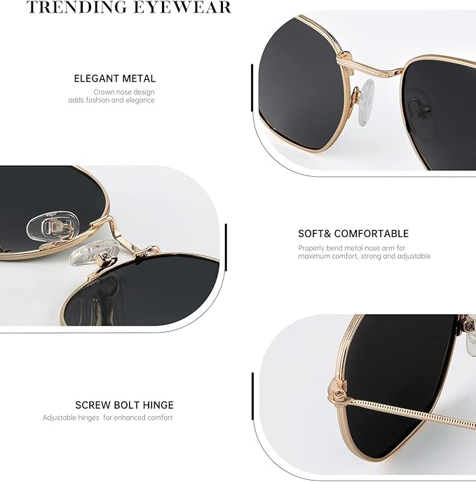 OJOS WEAR Hexagon Sunglasses For Women Men Polarized, Square Sunglasses For Womens Sun Glasses UV Protection Metal Frame